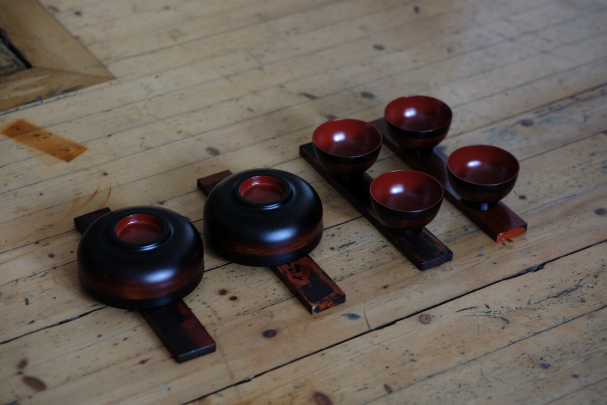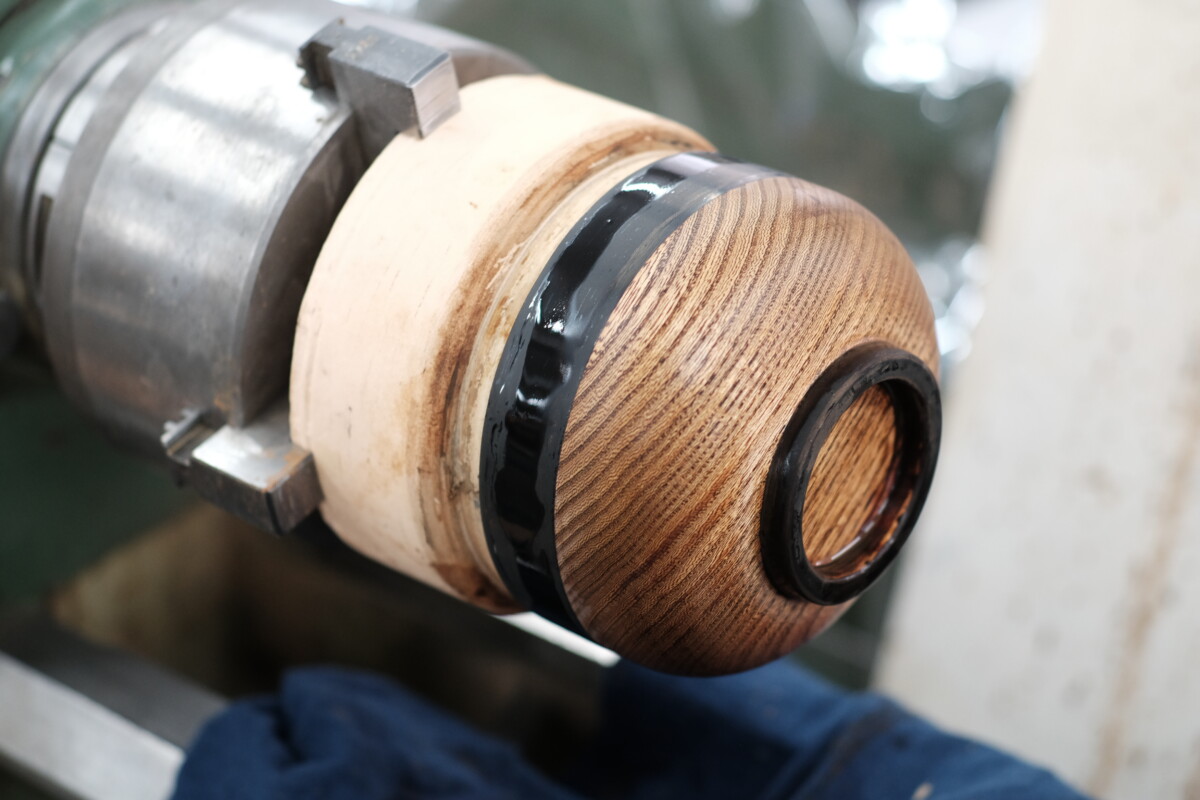Après la fabrication de la base en bois, la deuxième étape consiste à appliquer une première couche de ki-urushi brut. Celle-ci pénètre le bois et renforce les fibres. Viennent ensuite plusieurs étapes utilisant de la terre de diatomée, de la colle de riz et des tissus tissés. Entre chaque étape, la surface est poncée à l’eau et les couches sont durcies dans un four spécial appelé muro, où l’humidité est maintenue entre 70 et 80 % pour assurer un durcissement optimal de l’urushi. Les deux couches finales sont appliquées avec de l’urushi raffiné, soigneusement filtré et appliqué au pinceau à l’aide d’un outil spécifique.