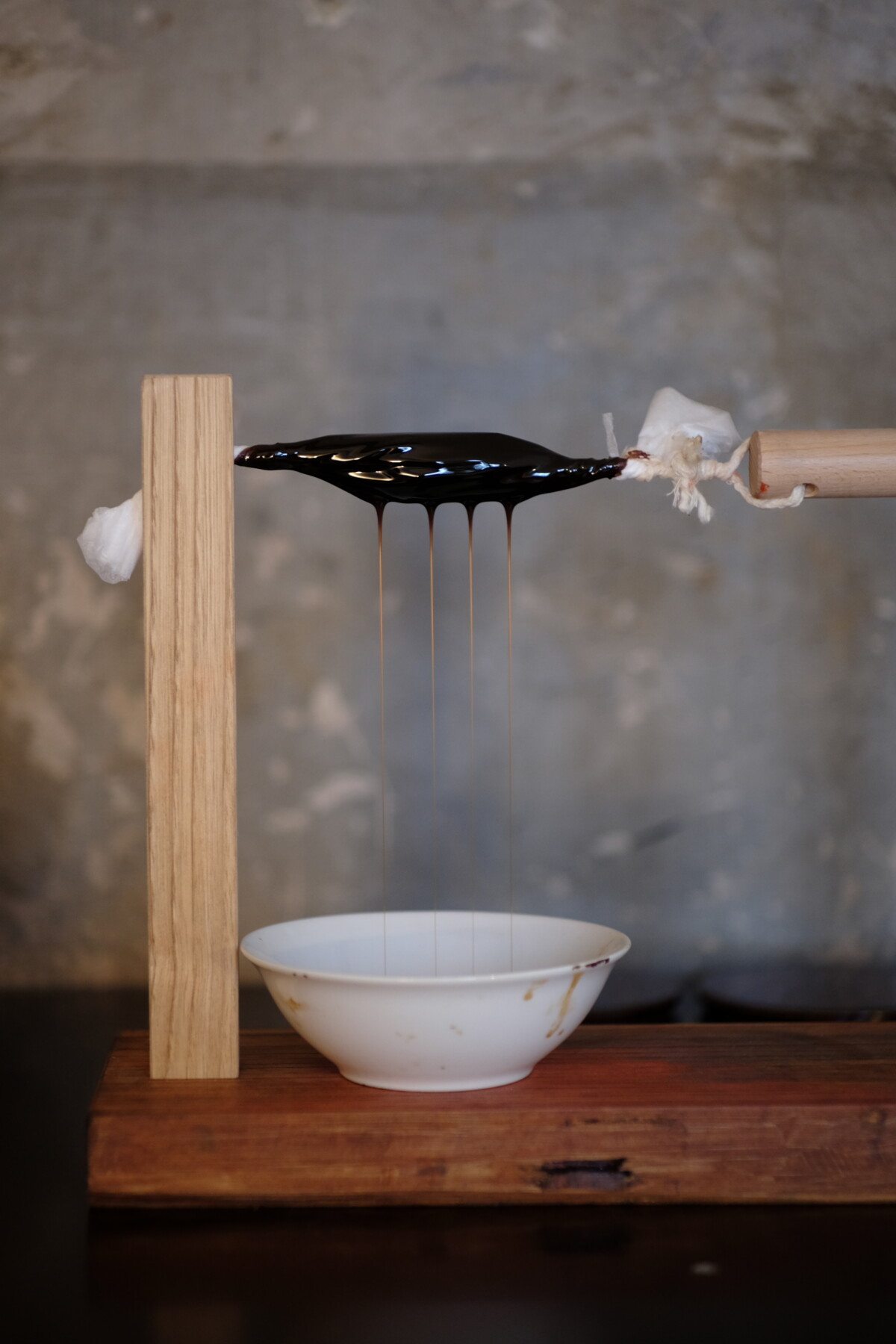 Pour moi, l’urushi est le matériau parfait pour l’étanchéité. À l’état humide, il est toxique pour l’humain, mais une fois durci, ses propriétés changent complètement : il devient résistant aux acides et à la chaleur, possède des qualités antibactériennes et reste légèrement flexible. J’aime pouvoir créer un objet en urushi entièrement à partir de matériaux naturels – aucun produit chimique synthétique n’est impliqué. La laque est unique : elle isole parfaitement le bois lorsqu’il est utilisé avec des liquides chauds, et la finition douce et brossée offre une sensation merveilleusement agréable au toucher.