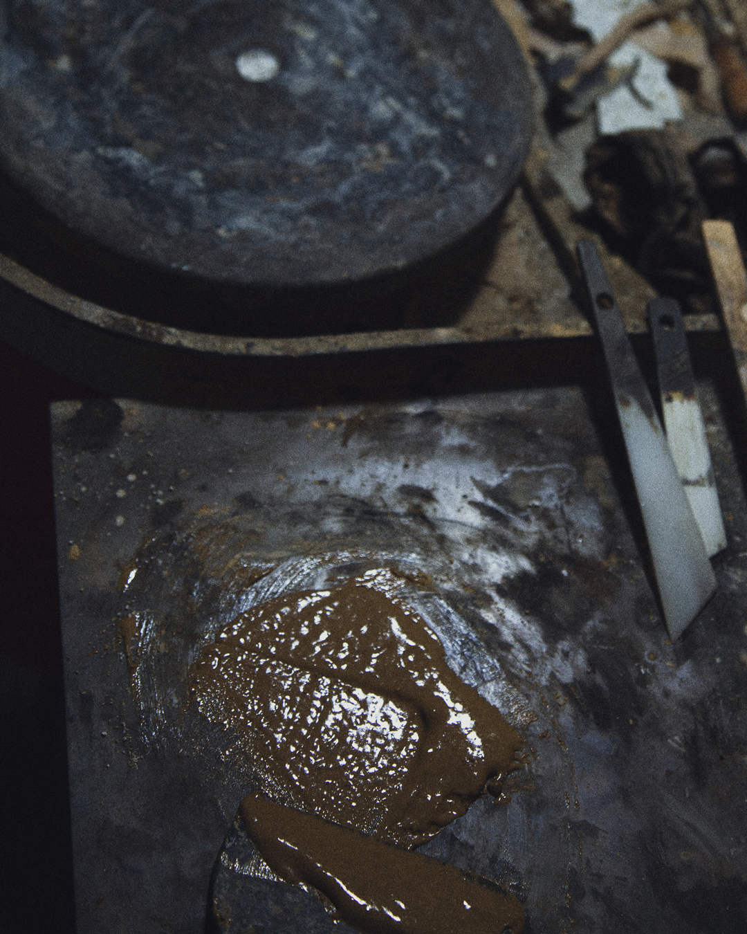 Parmi les techniques de laque japonaise figure le Sabi Yuri, qui associe argile, eau et laque brute. Est-ce cette méthode qui inspire ton propre procédé ?