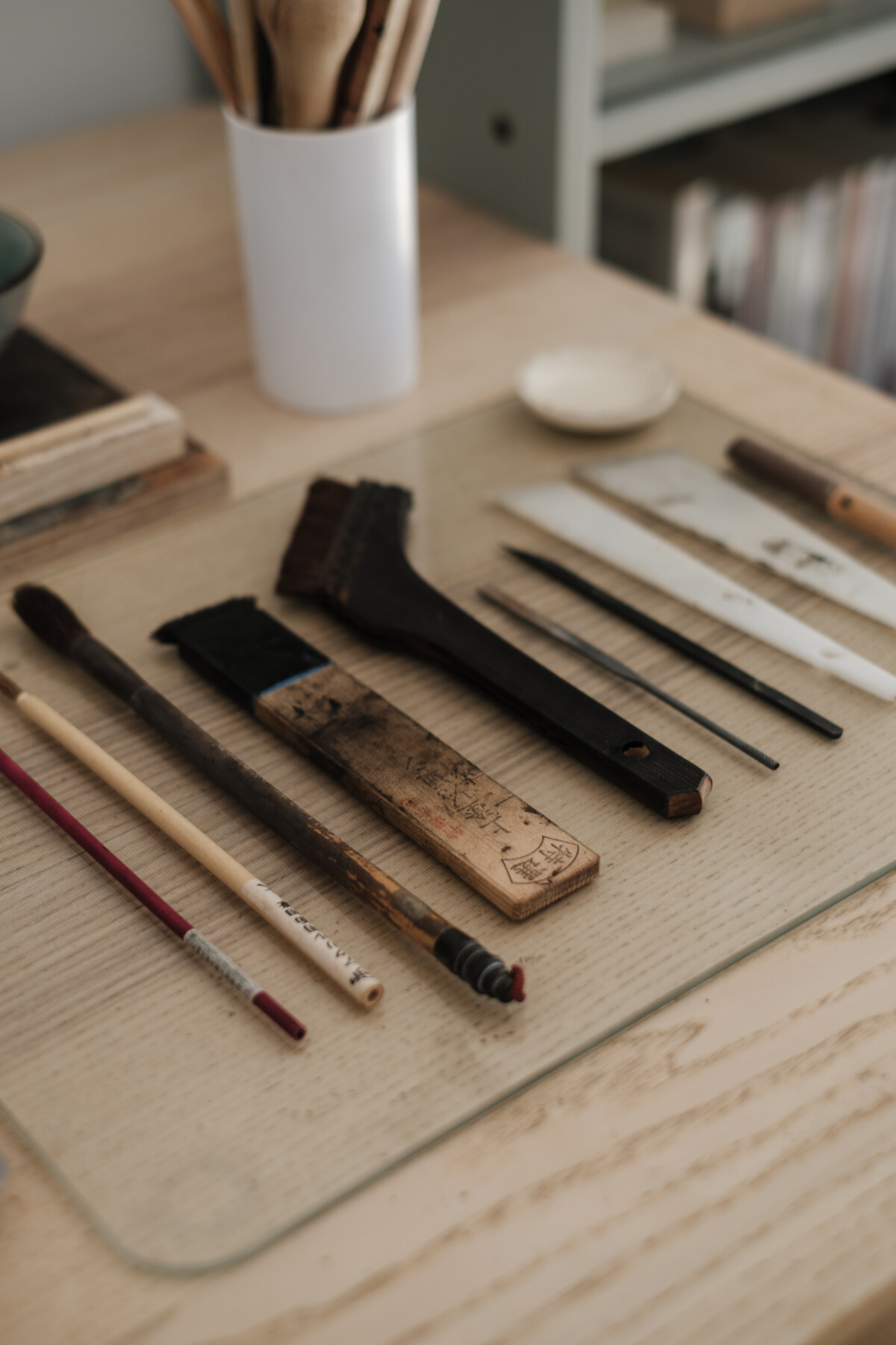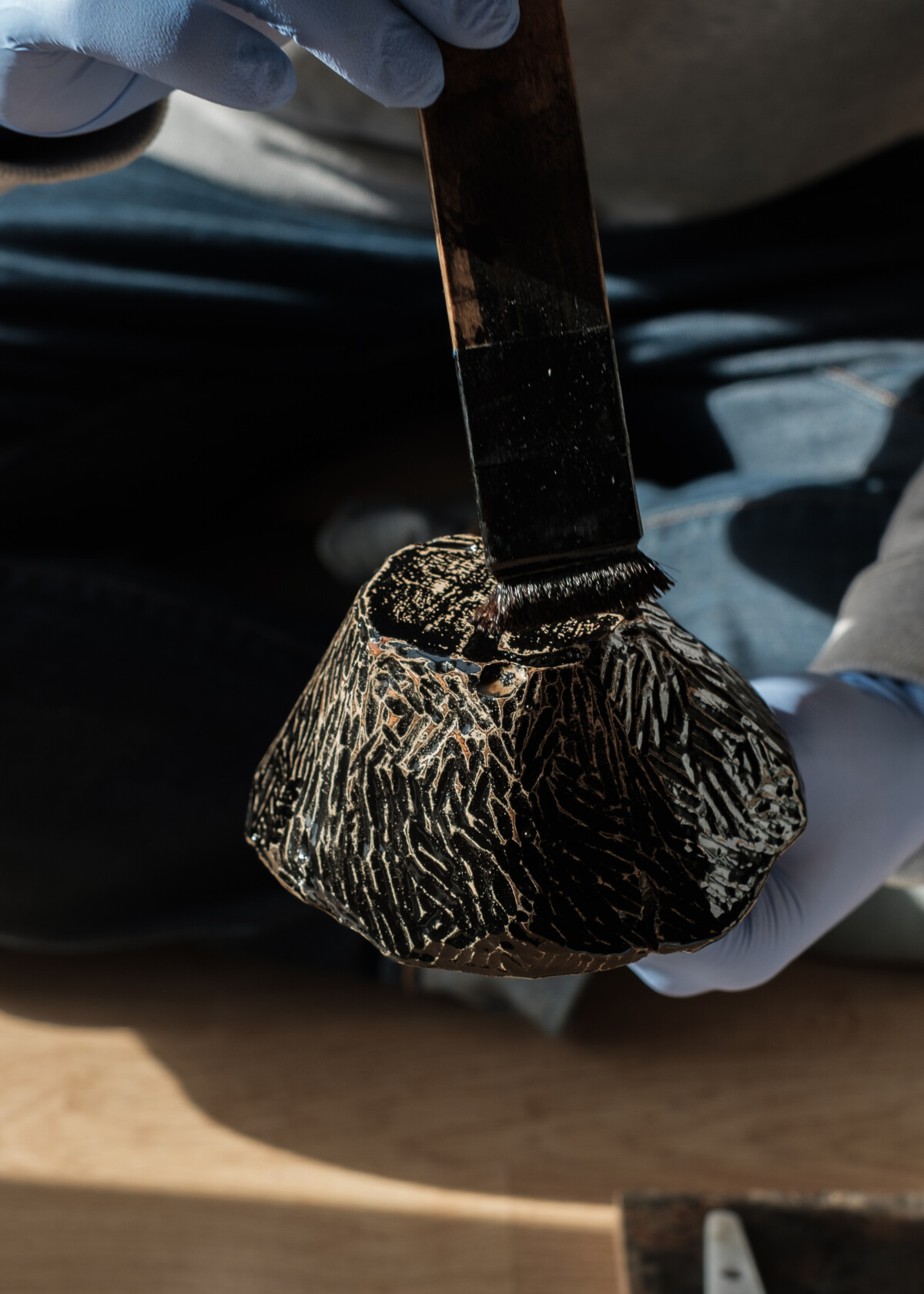 La laque se révèle être une matière d’une grande résilience, mais aussi d’une profonde exigence. Son apprentissage passe nécessairement par la connaissance des techniques traditionnelles, avant de pouvoir s’ouvrir à des formes plus expérimentales. Après plus de deux ans de pratique, j’en suis encore aux débuts de mes explorations. La laque demande du temps, de l’observation, et une attention constante à son environnement et aux saisons.