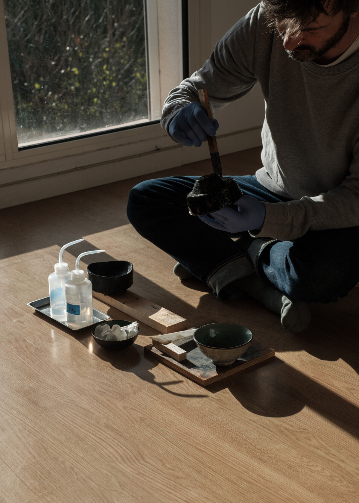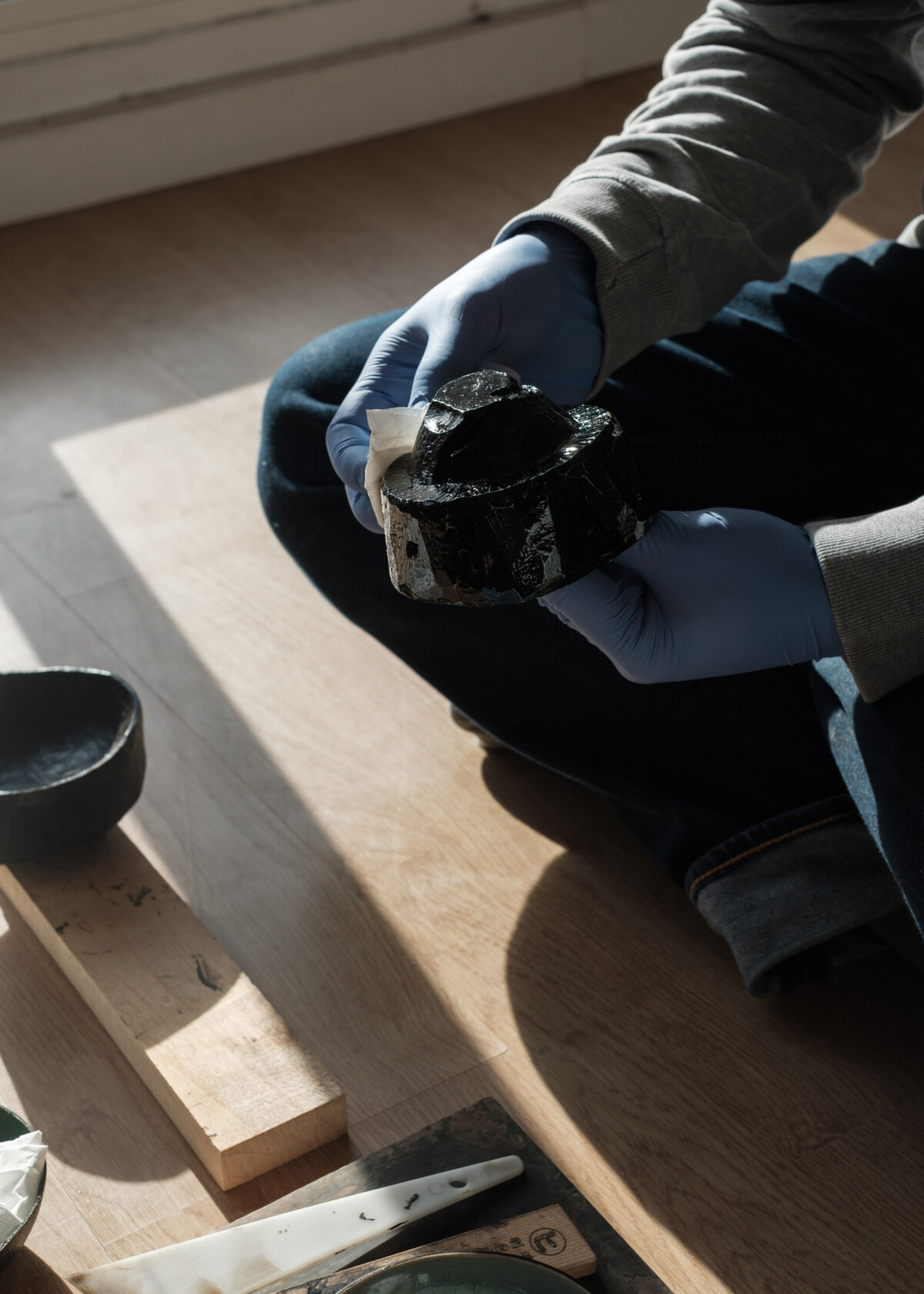 C’est au fil de mes recherches sur l’artisanat japonais que j’ai découvert la laque, en observant des objets d’une beauté simple et intemporelle. Sans en saisir tout de suite la portée, j’ai voulu approfondir cette rencontre en me formant auprès de Nicolas Pinon à Paris, dont l’enseignement m’a révélé la richesse et la subtilité de cette matière. La laque me touche par ses contours indéfinissables, sa profondeur silencieuse et les possibilités infinies qu’elle recèle.