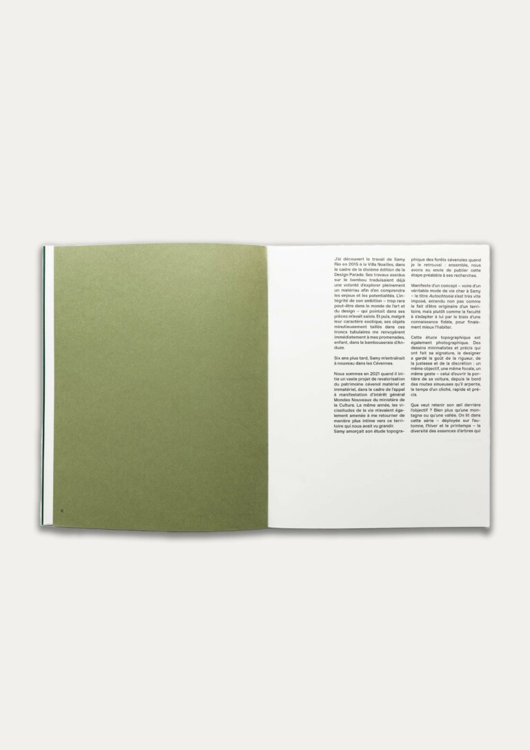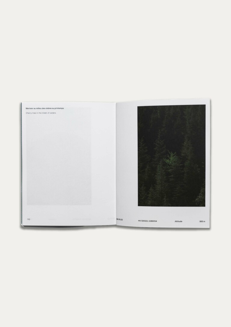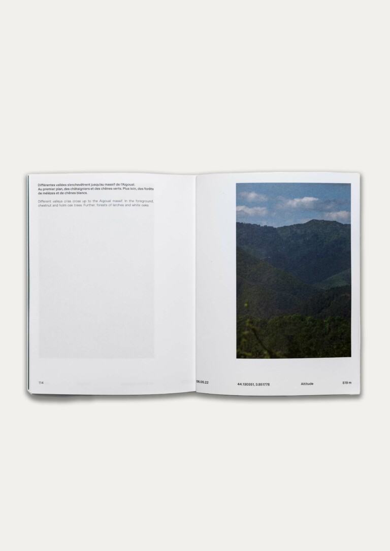 Ce livre présente son étude topographique et photographique des forêts de la région, étape préalable à ses recherches sur la filière bois locale et les possibilités d’une économie circulaire.