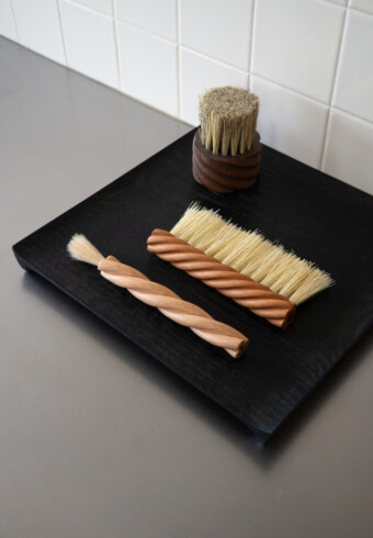 La brosse de table Torsade accompagne les gestes du quotidien. Ses fibres végétales de tampico assurent un balayage efficace tout en douceur. Réalisée en bois de cerisier et protégée par un vernis, sa teinte chaleureuse contraste avec les fibres claires.