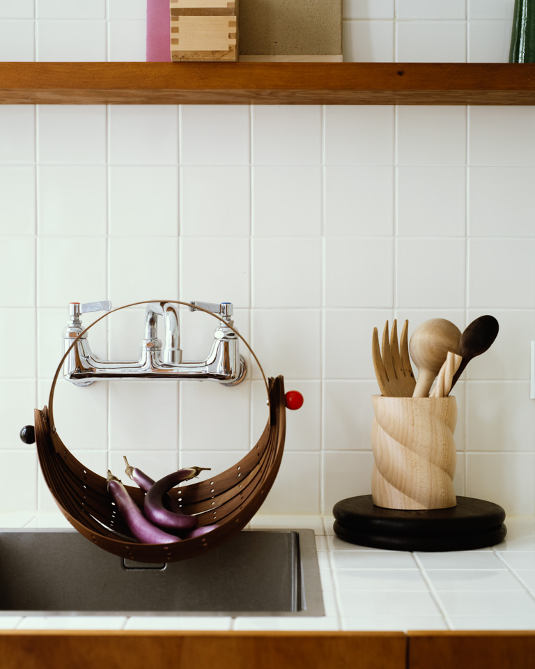 Zarucolander est une passoire pliable, conçue par le designer Rio Kobayashi. Les lamelles de la passoire, confectionnées en noyer, ont été cintrées à la vapeur, puis ont été fixées à l’aide de vis à boules de couleur rouge et noire. Comme la passoire est pliable, il suffit de faire tourner les boules pour desserrer les vis et ainsi la déplier. Une fois les vis resserrées, la passoire restera dans la forme souhaitée.