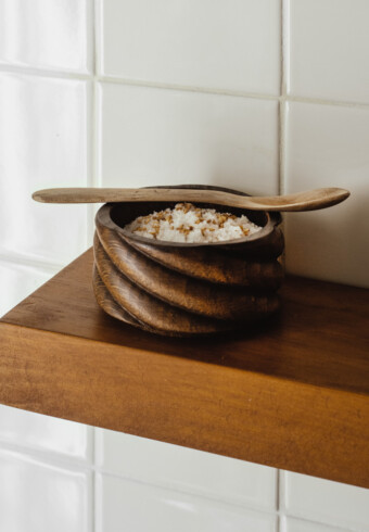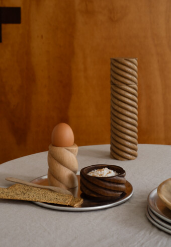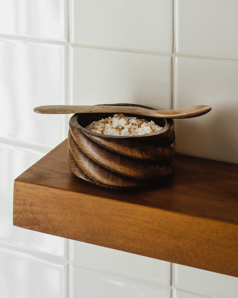Le petit récipient Torsade est idéal pour accueillir épices et aromates en cuisine ou sur la table. Empilable, il allie esthétique sculpturale et fonctionnalité. Conçu en bois de hêtre certifié FSC et teinté au brou de noix, il révèle une teinte foncée et chaleureuse. Protégé par un vernis alimentaire, il est pensé pour être le plus intemporel et durable possible.