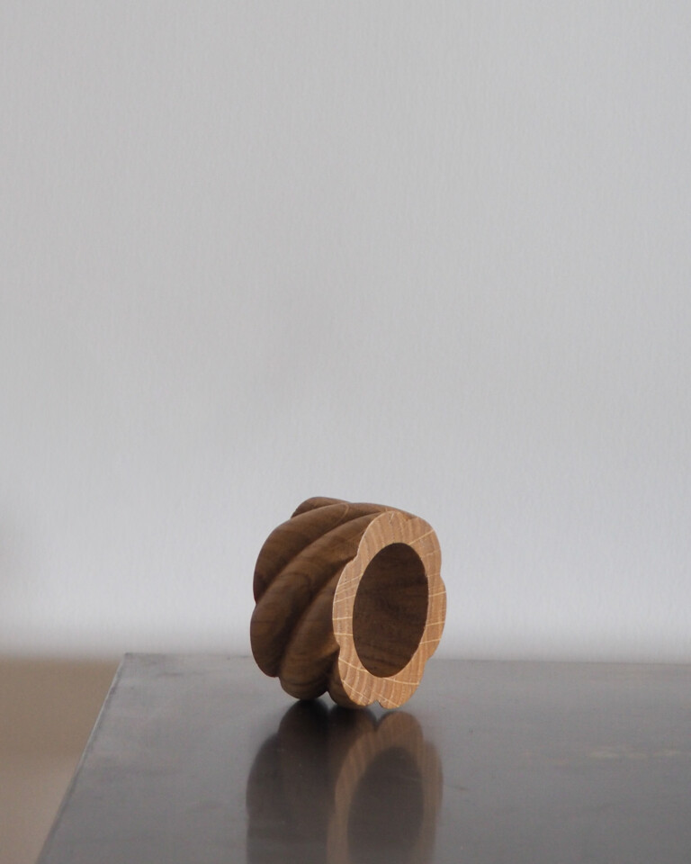 Les ronds de serviette Torsade apportent une touche sculpturale aux tables du quotidien comme aux occasions spéciales. Conçus en bois de chêne certifié FSC et protégés par un vernis alimentaire, ils ont été pensés pour pour être les plus intemporels et durables possible. Vendus par set de 4.