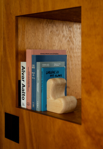 OROS et Chose Commune se sont associés pour créer le serre-livres Affinités, réalisé artisanalement dans le sud de la France à partir d’essences méditerranéennes locales.